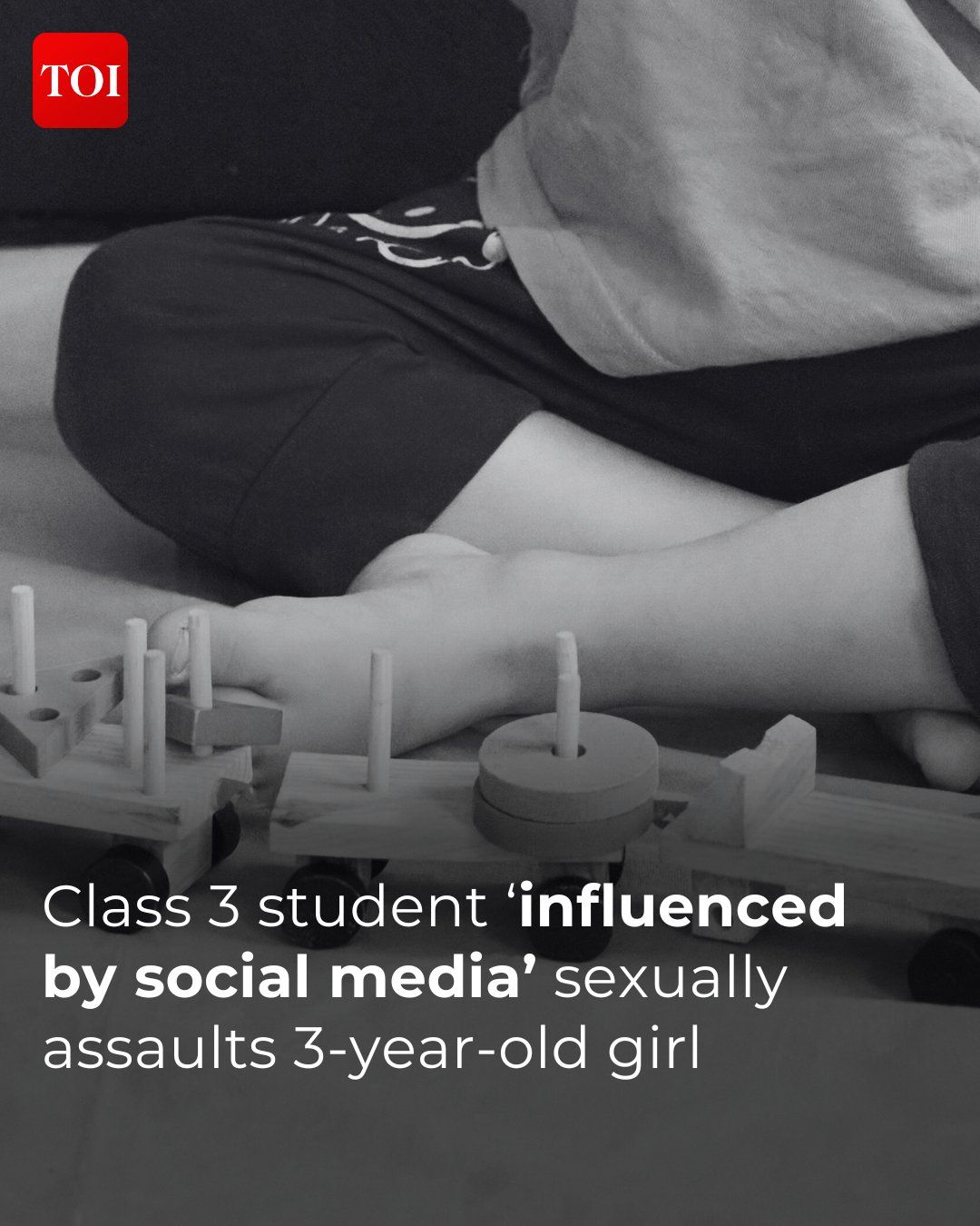 A nine-year-old boy in #Pune was detained for allegedly sexually assaulting a three-year-old girl. The boy, who reportedly told police he was influenced by social media, was released on bail and placed in his parents' custody. Courtesy TOI