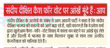Sandeep Dixit is taking BJP's story forward and turned a blind eye to the BJP's cash for vote.: AAP