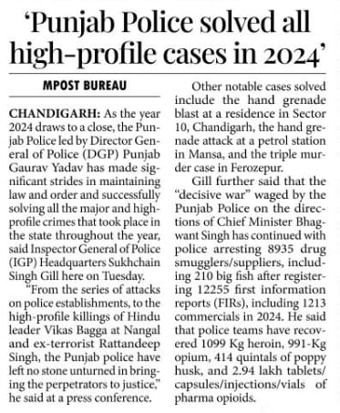 22.Punjab Police have solved all High Profile cases in 2024. The Indian Express, India Today
