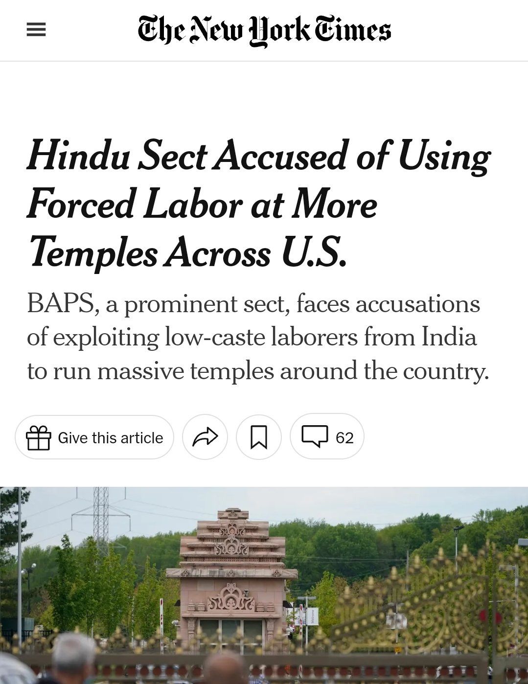 https://x.com/SachinGuptaUP/status/187439646416143975211/5/21 FBI rescued aprx 200 Dalit & Adivasis from Swaminarayan Temple in New Jersey, charging labour trafficking, exploitation, Servitude. Meanwhile 07/10/23 California’s Governor vetoed a bill banning caste discrimination after pressure from Hindutva groups. Stay.