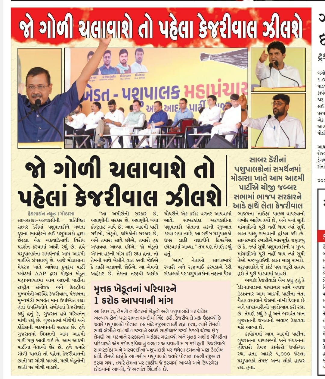 13. Arvind Kejriwal in Gujarat has protested strongly on the arrest of AAP MLA Chaiter Vasava.