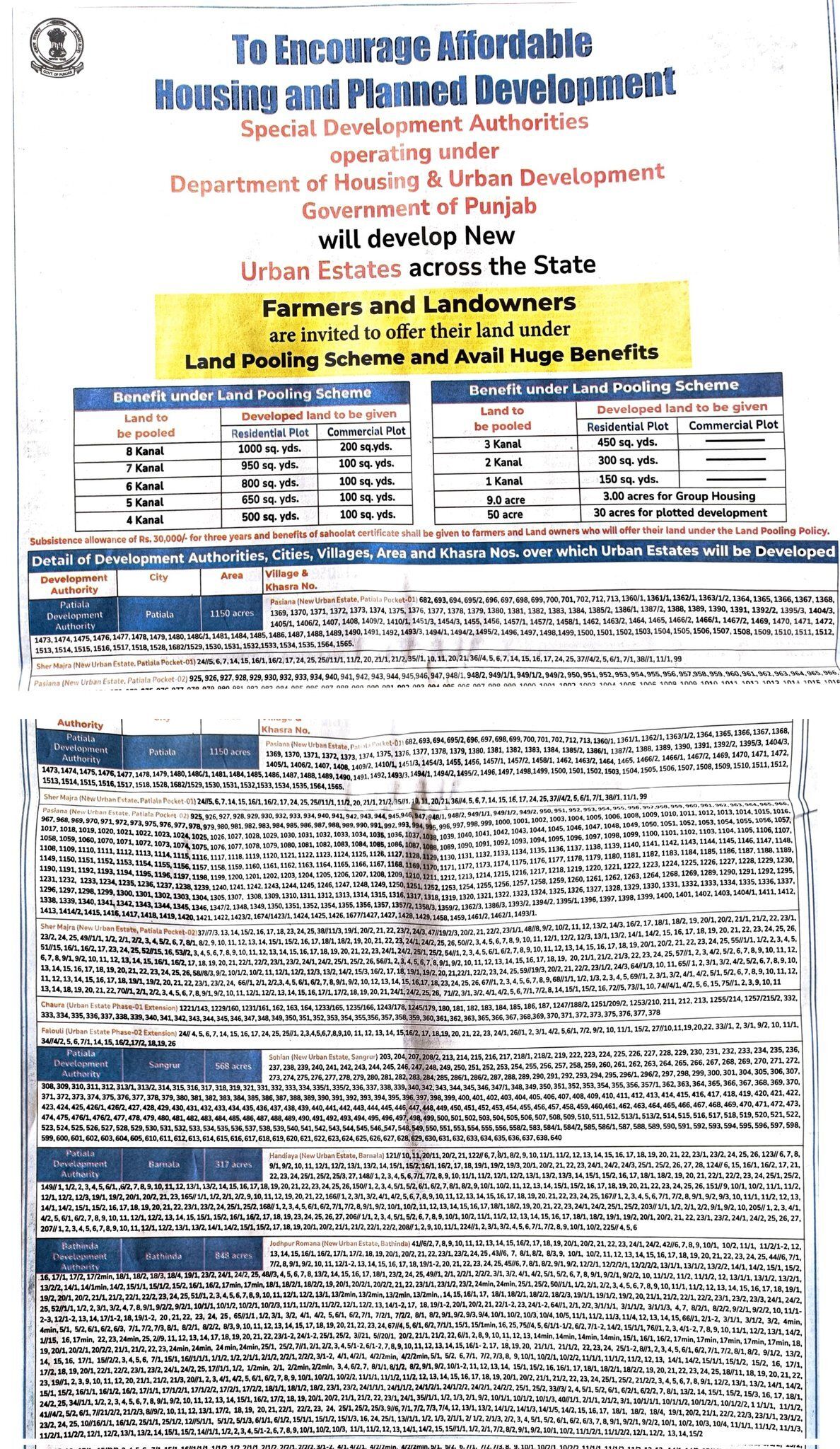 To Encourage affordable housing & planned development, Govt will Develop New urban estates across the states , Farmers & Landowners are invited to offer their land under land pooling scheme for huge benefits. Punjab by CM @BhagwantMann
