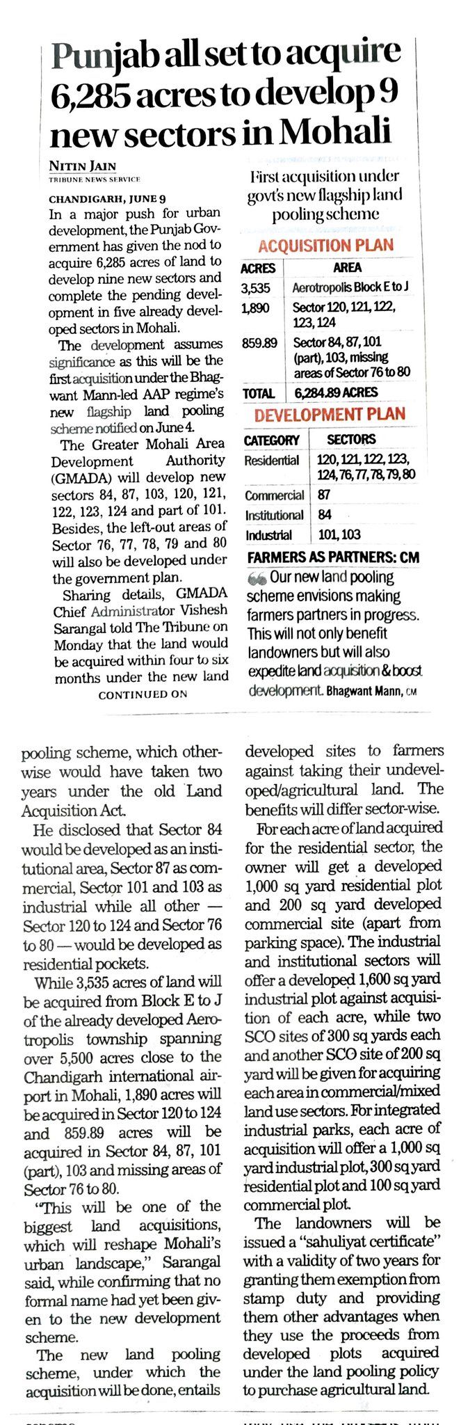Set to acquire 6285 acres to develop 9 sectors in Mohali.