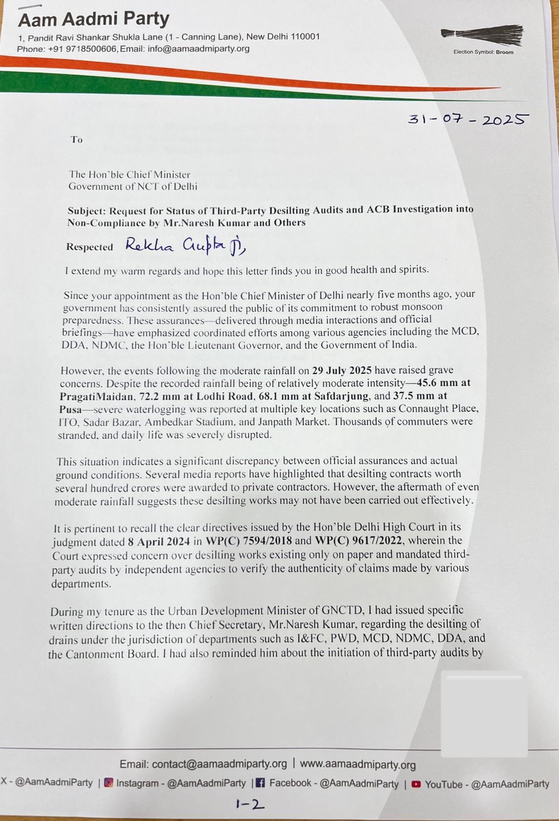 Despite the Delhi High Court's order, a third-party audit of the desilting works worth hundreds of crores has not been conducted. This clearly appears to be an organized effort to conceal corrupt activities and avoid investigation. I am writing a letter to CM Rekha Gupta ji demanding an ACB investigation.