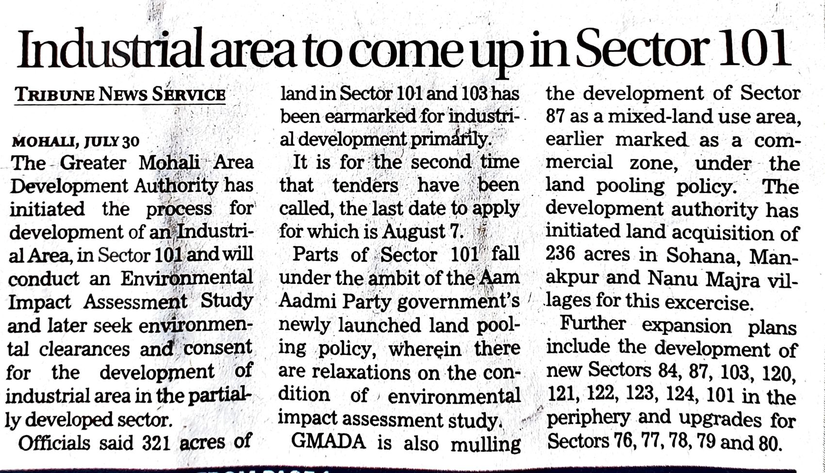 https://x.com/harjotbains/status/1950551952703869417Industrial Area to come up in sector 101, Greater Mohali