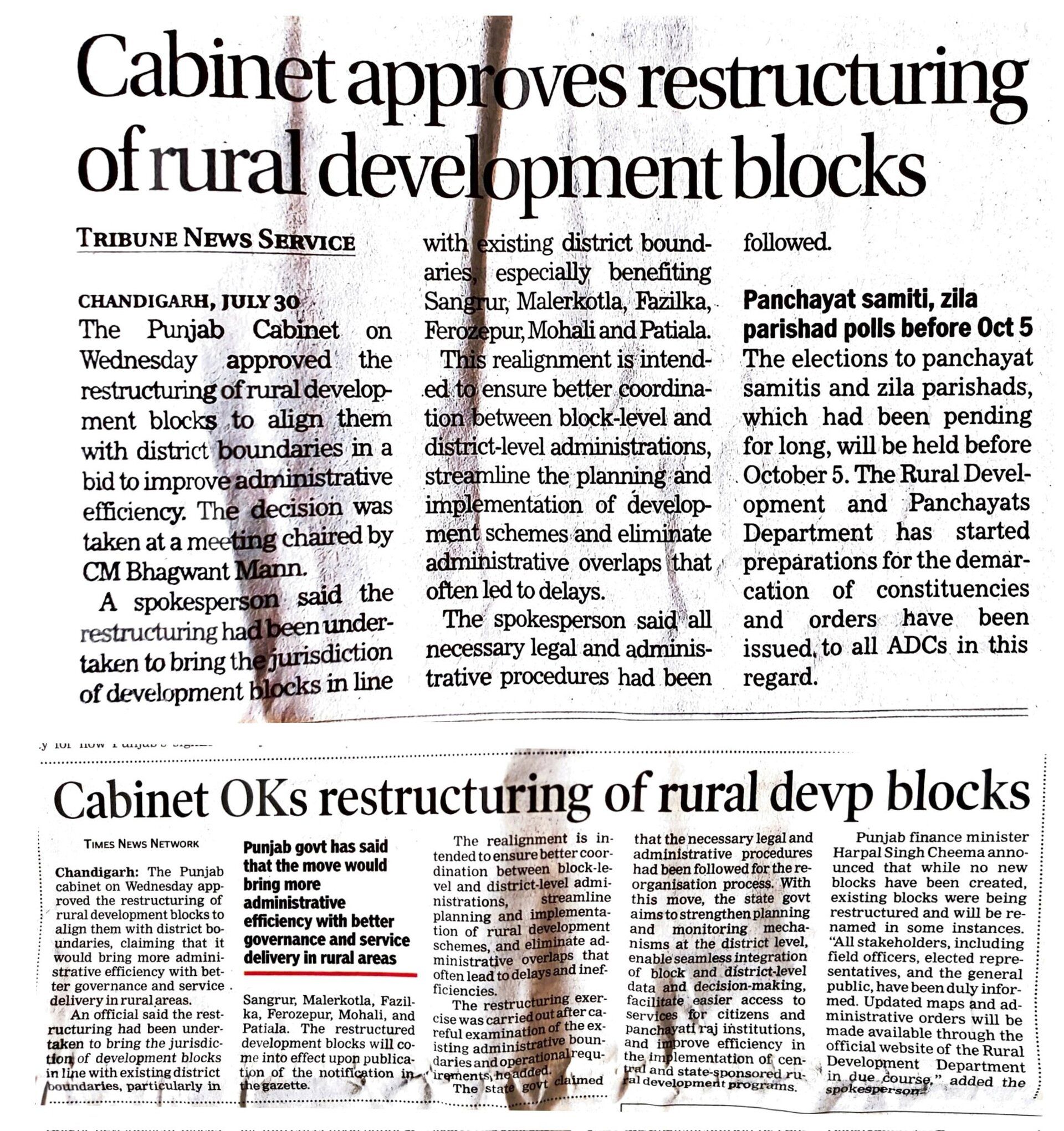 https://bestcolleges.indiatoday.in/news-detail/punjab-to-introduce-indias-first-evidence-based-anti-drug-curriculum-for-students-4823Great news for the residents of Nangal and surrounding villages The Punjab Government has declared Nangal as a new block. In today's Punjab Cabinet meeting, the Cabinet decided to reorganize the blocks of Punjab. I am very pleased to share this information that Nangal city, which falls under the Sri Anandpur Sahib constituency, has now been made a new block. This will greatly benefit the villages in the Nangal area, while also providing significant relief to the people. Additionally, this will improve the performance of departments and panchayats.