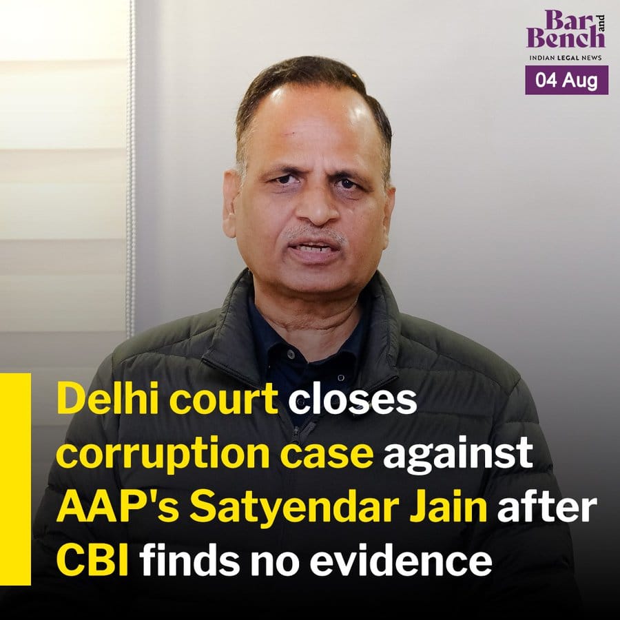Delhi Court closes the corruption case against AAP's Satyendar Jain after the CBI, having investigated for four years, found no evidence of wrongdoing. Special Judge Dig Vinay Singh accepted the CBI's closure report.
