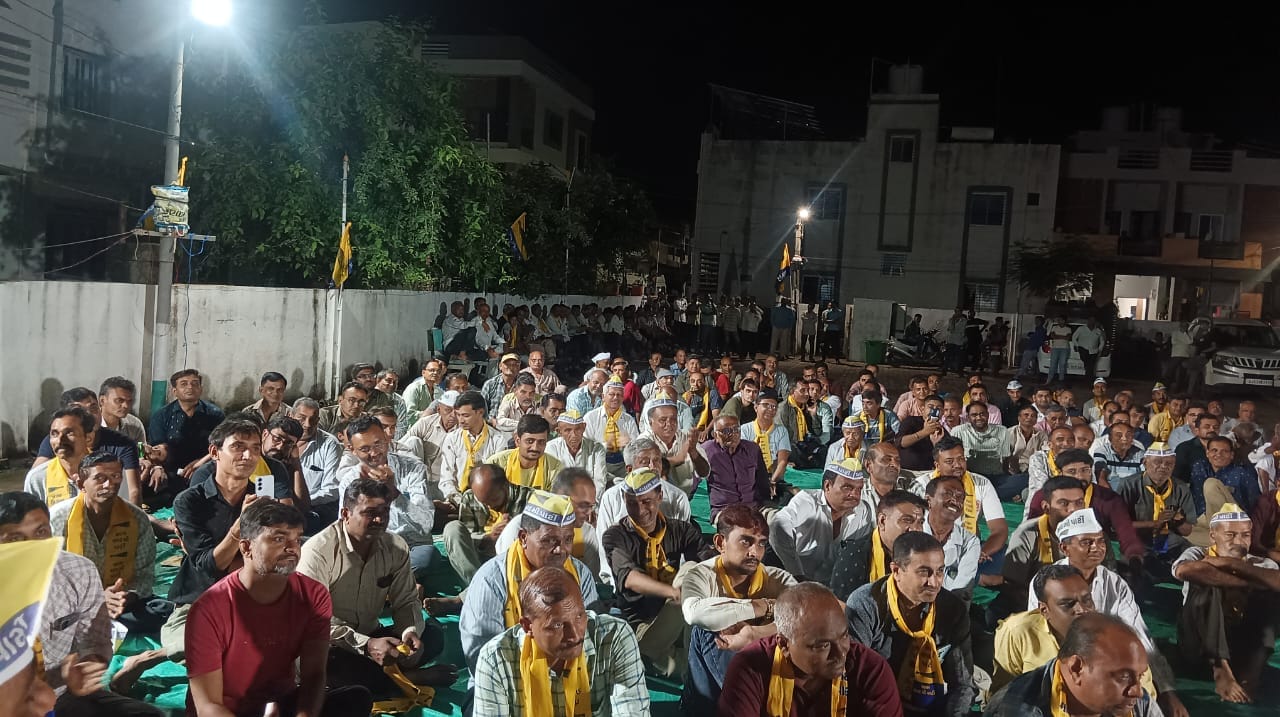 Under the Aam Aadmi Party's "Gujarat Jodo Campaign," Mota Khutvada, Mahuva, Bhavnagar a public meeting was held, and a large number of locals attended the meeting, with many people joining the Aam Aadmi Party's work-oriented politics.