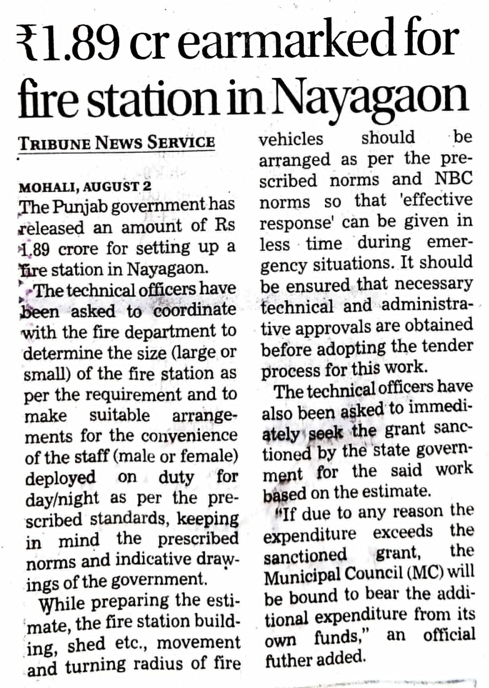 https://x.com/AamAadmiParty/status/1955602736545747091Rs 1.89 cr Earmarked for fire station in Nayagaon.