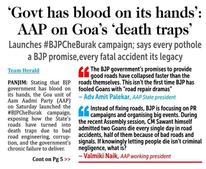 The BJP government's promises to provide good roads have collapsed faster than the roads themselves. This isn't the first time the BJP has fooled Goans with ' road repair dramas': Amit Palekar.