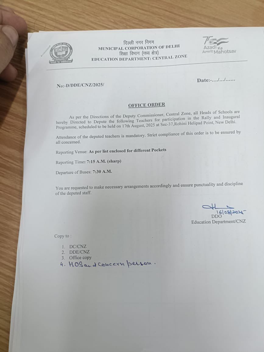 https://x.com/AamAadmiParty/status/1957017797445235185On the same note, Priyanka Kakkar said “ All teachers should form a crowd at Modi ji's rally to make it successful. If the order is not strictly followed, jobs will be lost. Arvind Kejriwal ji used to send teachers to France for training; an undereducated government does not understand the importance of education.”
