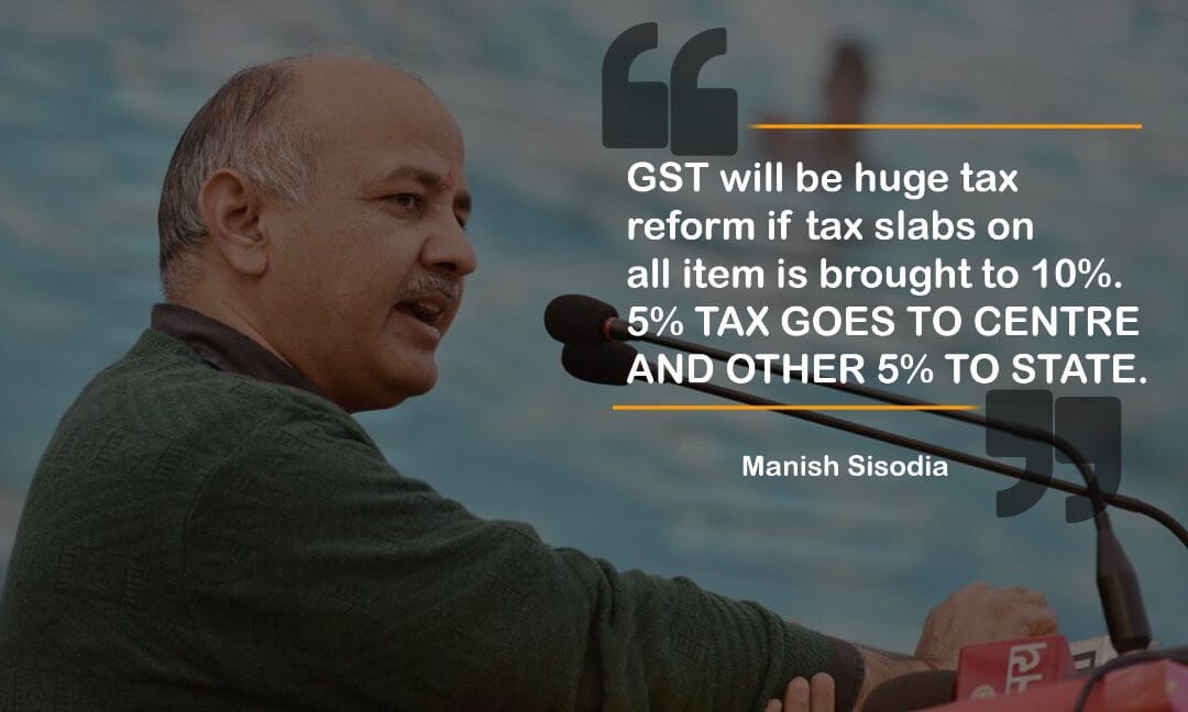 GST will be huge tax reform if tax slabs on all item is brought down to 10%. 5% tax goes to Centre and other 5% to state. - @msisodia