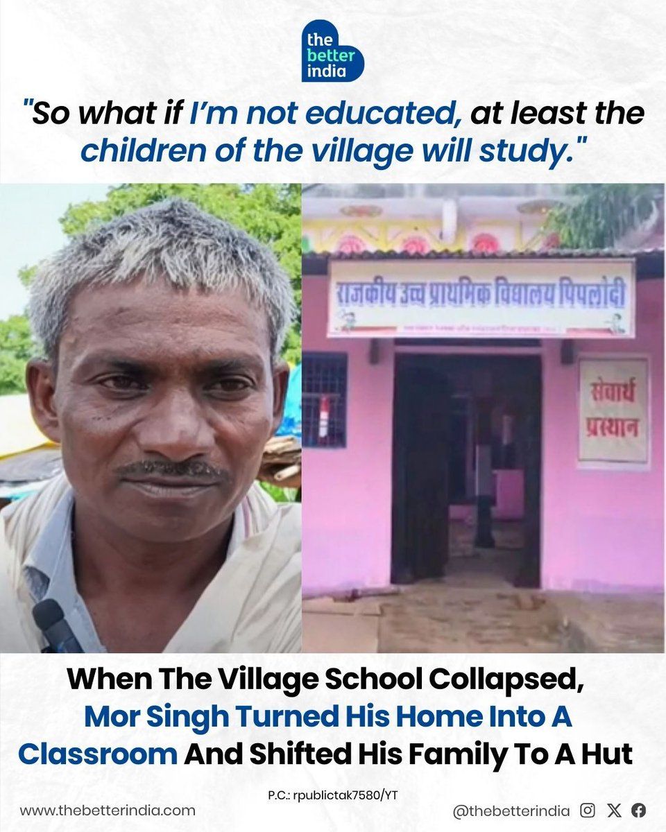 That’s when Mor Singh stepped forward. A villager who never got an education himself, he offered his own house to become the school and moved his family of ten into a hut made of wood and tarpaulin in the open fields.