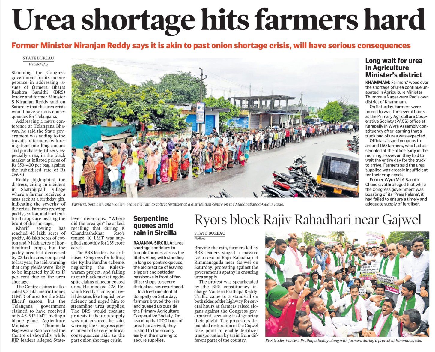https://thecsrjournal.in/haryana-protests-over-brutal-killing-of-year-old-teacher/Urea shortage for formers .In Uttar Pradesh., Madhya Pradesh, and the same is the situation in many of the states.