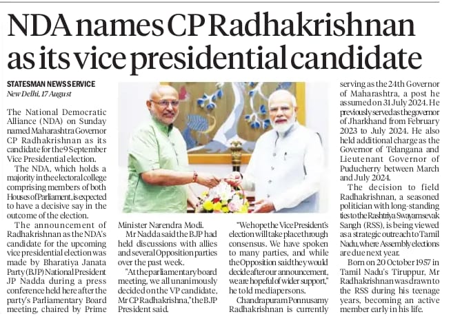 https://www.freepressjournal.in/bhopal/video-samajwadi-party-chief-akhilesh-yadav-pauses-vote-theft-protest-outside-parliament-to-greet-bjp-cm-mohan-yadavBJP's VP candidate, Maharashtra Governor.