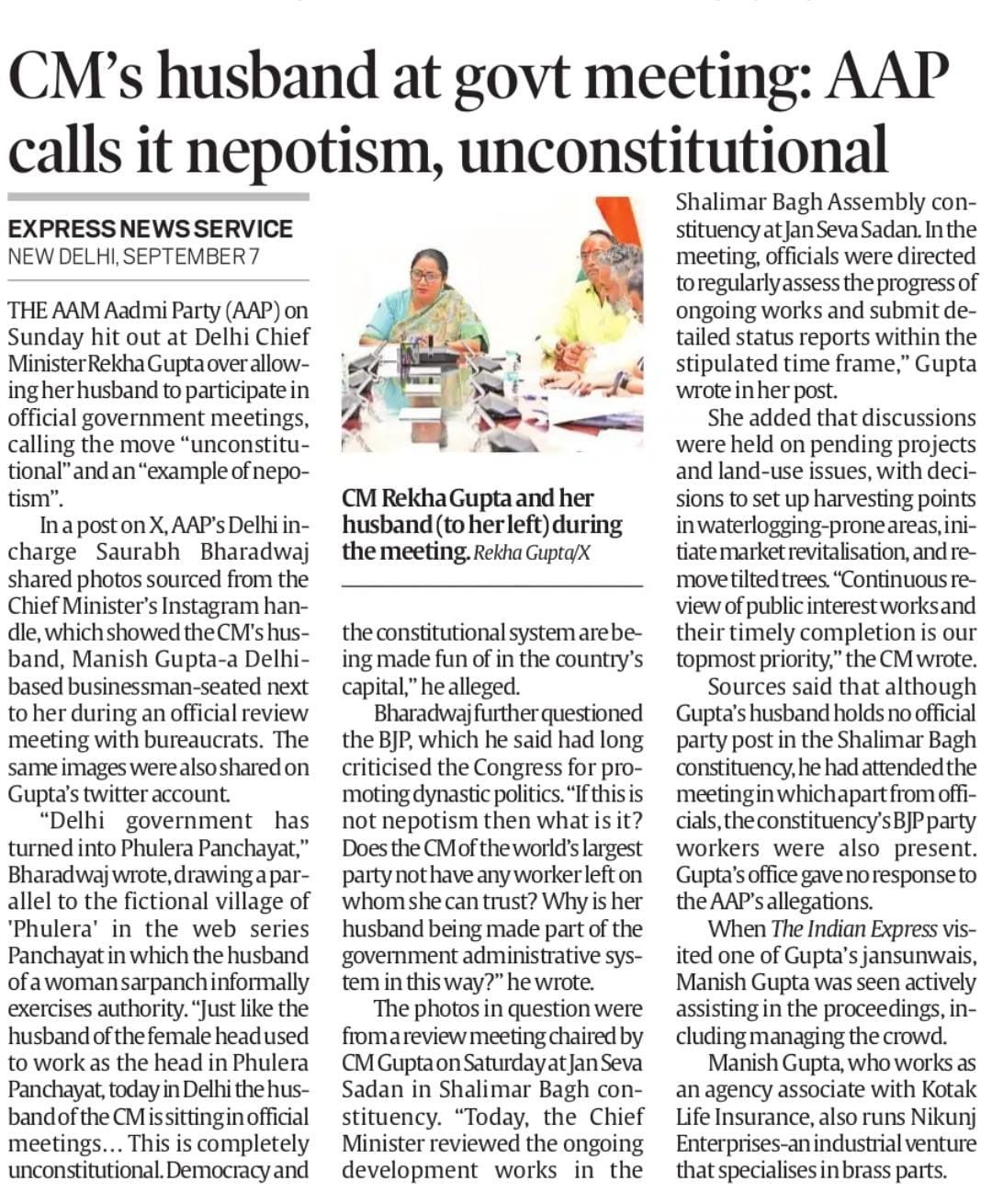 https://www.dailyexcelsior.com/is-demanding-hospital-a-crime-kejriwal-slams-detention-of-aap-mla-in-jk-under-psa/Right now in Delhi, there are two Chief Ministers: the first is Ms. Rekha Gupta, and the second is her husband Mr. Manish Gupta, who is the Super CM. — Sanjay Singh