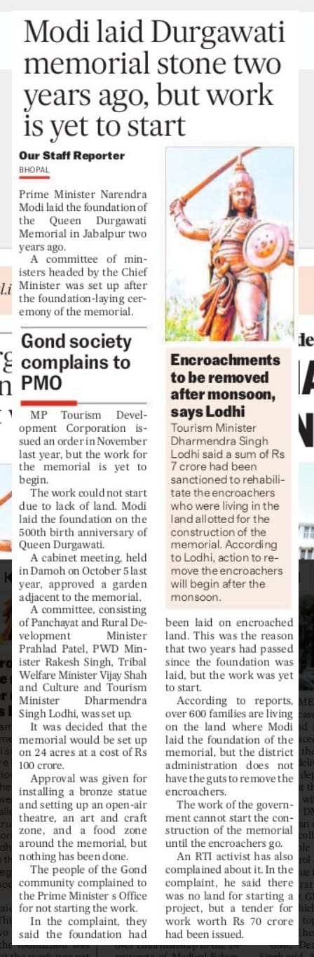 PM Modi laid the foundation of the Queen Durgawati Memorial in Jabalpur two years ago. The work has not started yet.