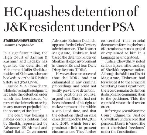 https://www.hindustantimes.com/india-news/gardan-daba-dunga-man-storms-into-wifes-fb-live-over-aap-j-k-mla-mehraj-maliks-detention-threatens-her-101757595897903.htmlIn a significant ruling, the High Court of J&K and Ladakh has quashed the detention of a resident of Kishtwar, who was booked under the PSA.