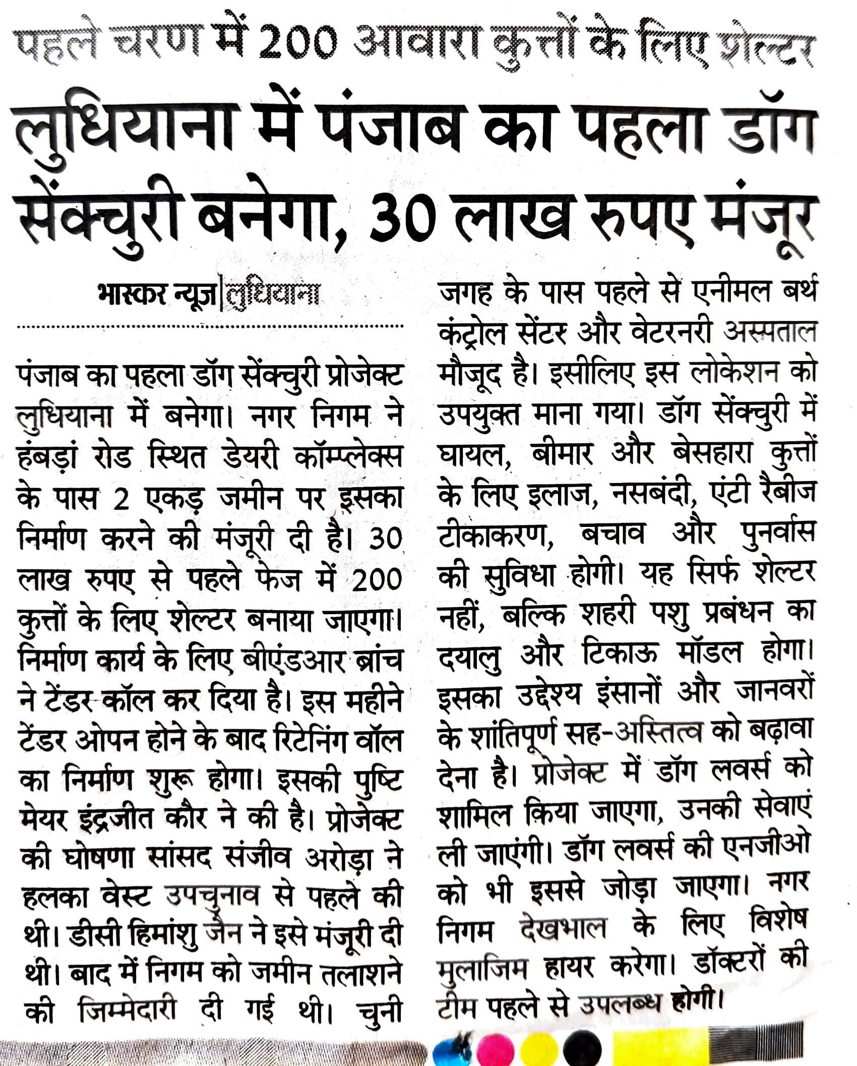 Shelter for 200 stray dogs in 1st phase. Punjab's first dog sanctuary will be built in Ludhiana,Rs 30 lakh approved.