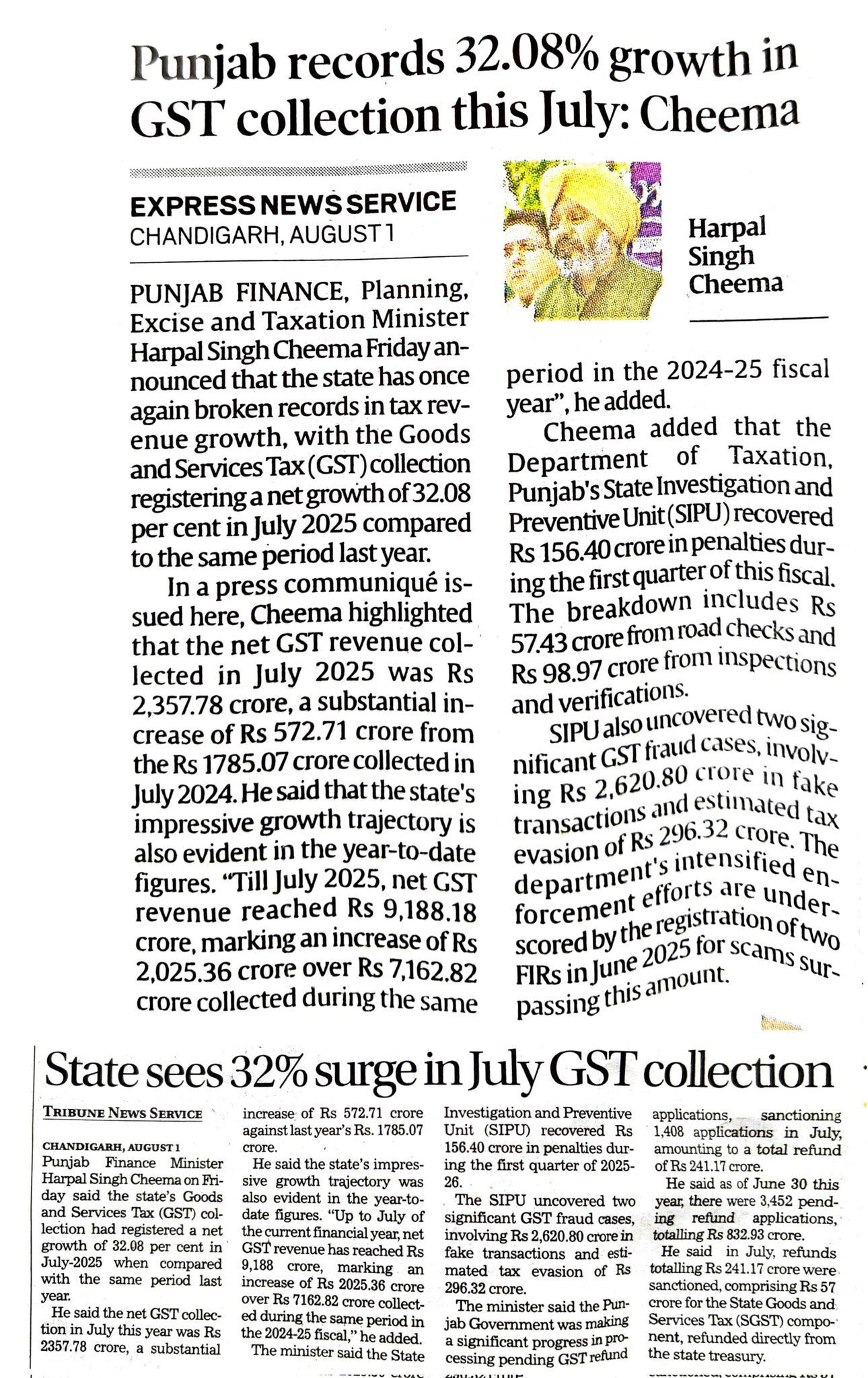 Record 32.08% growth in GST Collection this July 2025.