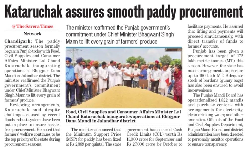 The paddy procurement session formally began in Punjab.