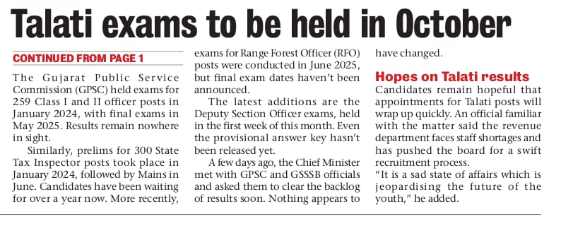 https://x.com/AamAadmiParty/status/1968502739857477830GUJARAT CORRUPTION : Gujarat: Talati finals date set - 2,389 posts up for grabs However, lakhs await the results of various government recruitment tests held over the last two years.