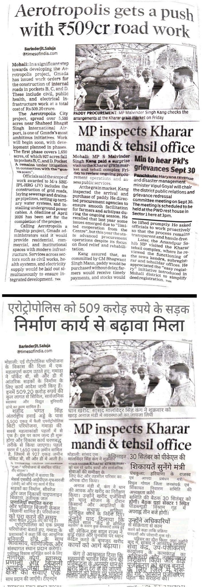 Aerotropolis gets a push with Rs 509 cr road work. It is an Airport project in 5,500 acers land near Shaheed Bhagat Singh Airport.