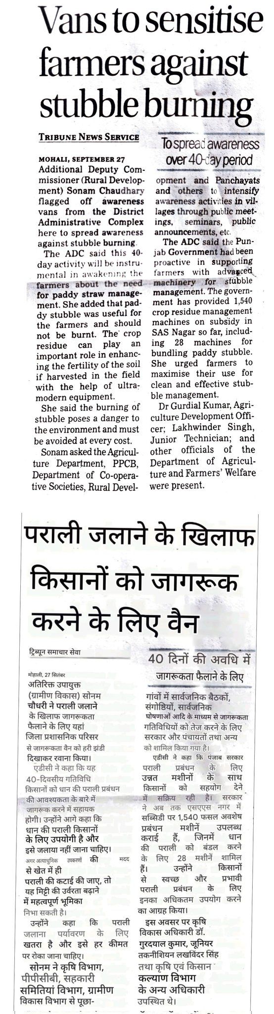 Motor Vans travel to sensitize farmers against stubble burning