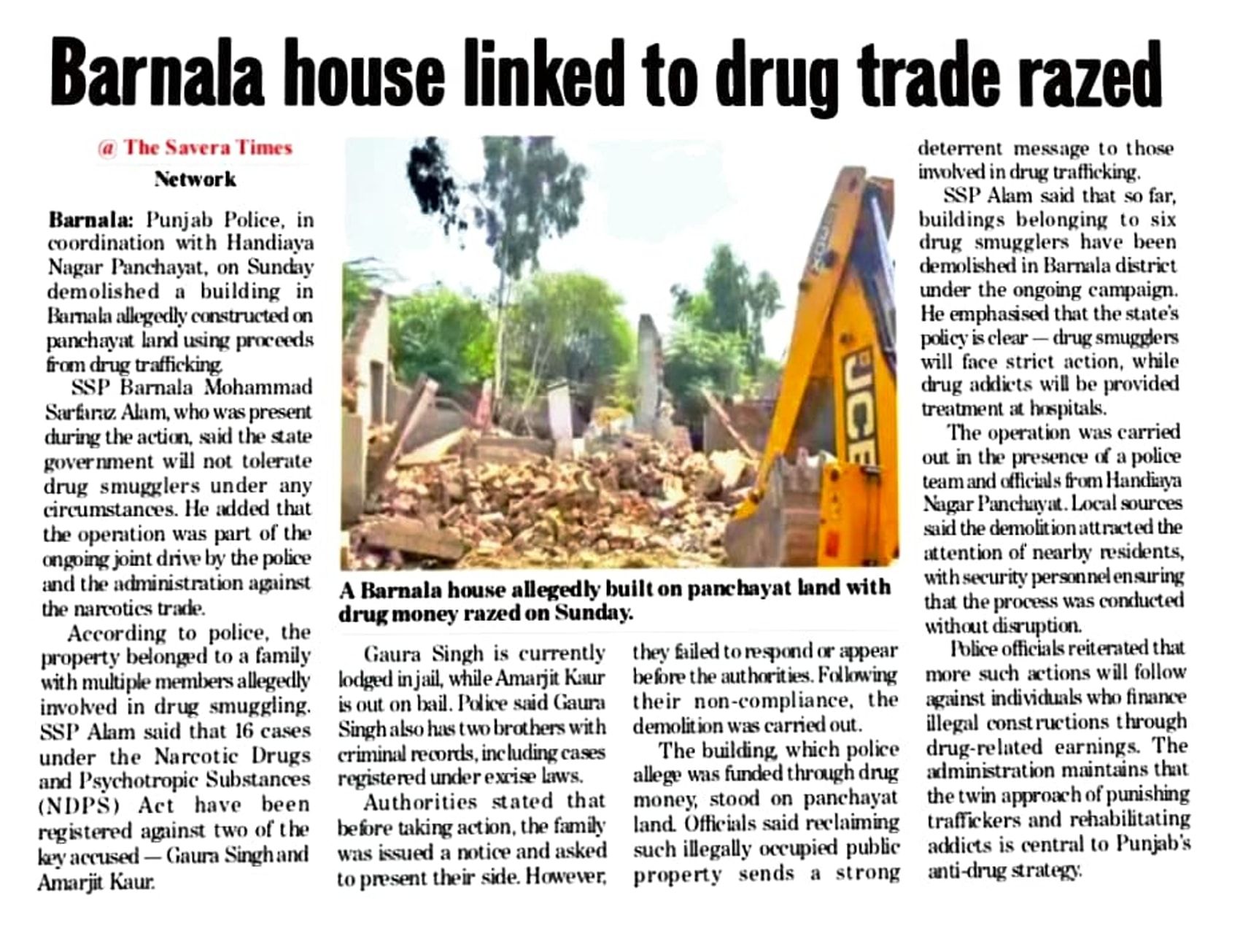 Barnala house linked to drug trade razed.