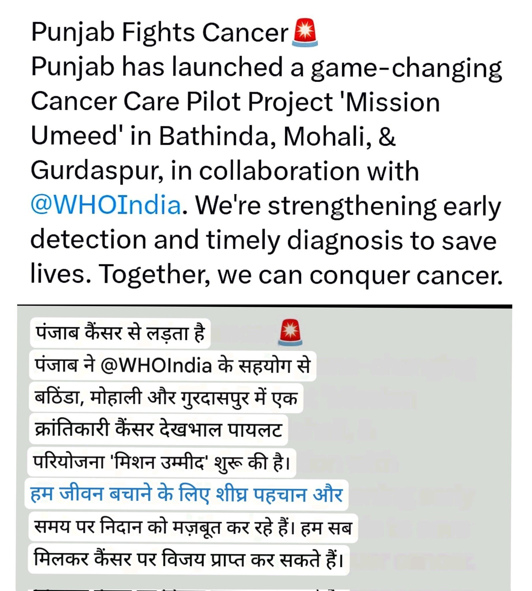 Launched Cancer Care Pilot Project 'Mission Umeed' collaborated with @WHOIndia.