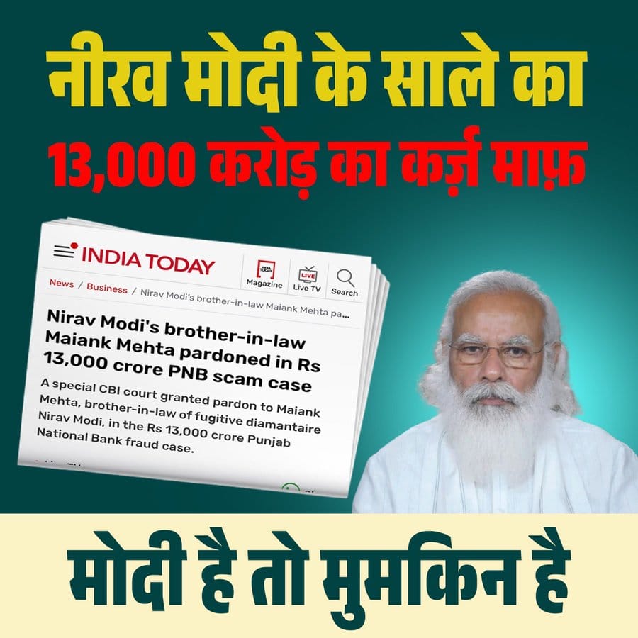 Nirav Modi’s Brother In Law Maiyank Mehta was granted pardon on 13.000 crore PNB loan.