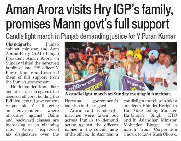 Aman Arora visits Haryana IGP's family, promises Mann government's full support.