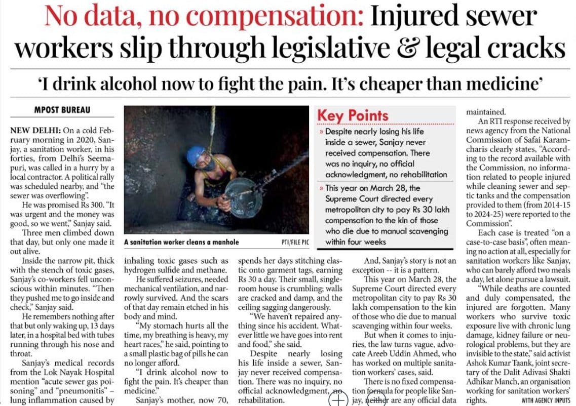 Delhi: No inquiry, no official acknowledgement, no rehabilitation, no compensation ..."I drink alcohol now to fight the pain. It's cheaper than medicine," said the injured sewer worker.