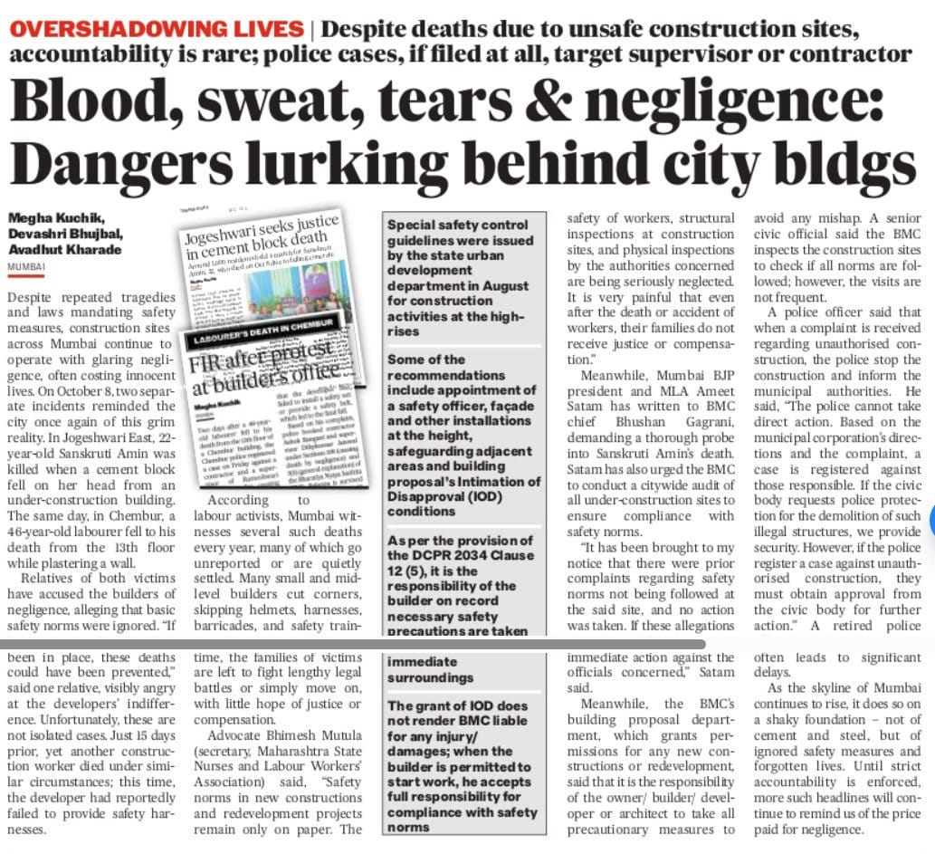 THE SYSTEM Despite deaths due to unsafe construction sites, ACCOUNTABILITY IS RARE; Police cases, if filed at all, target the supervisor or contractors. (FROM CENTRAL GOVT AND DOWNWARD THIS IS THE SYSTEM!)