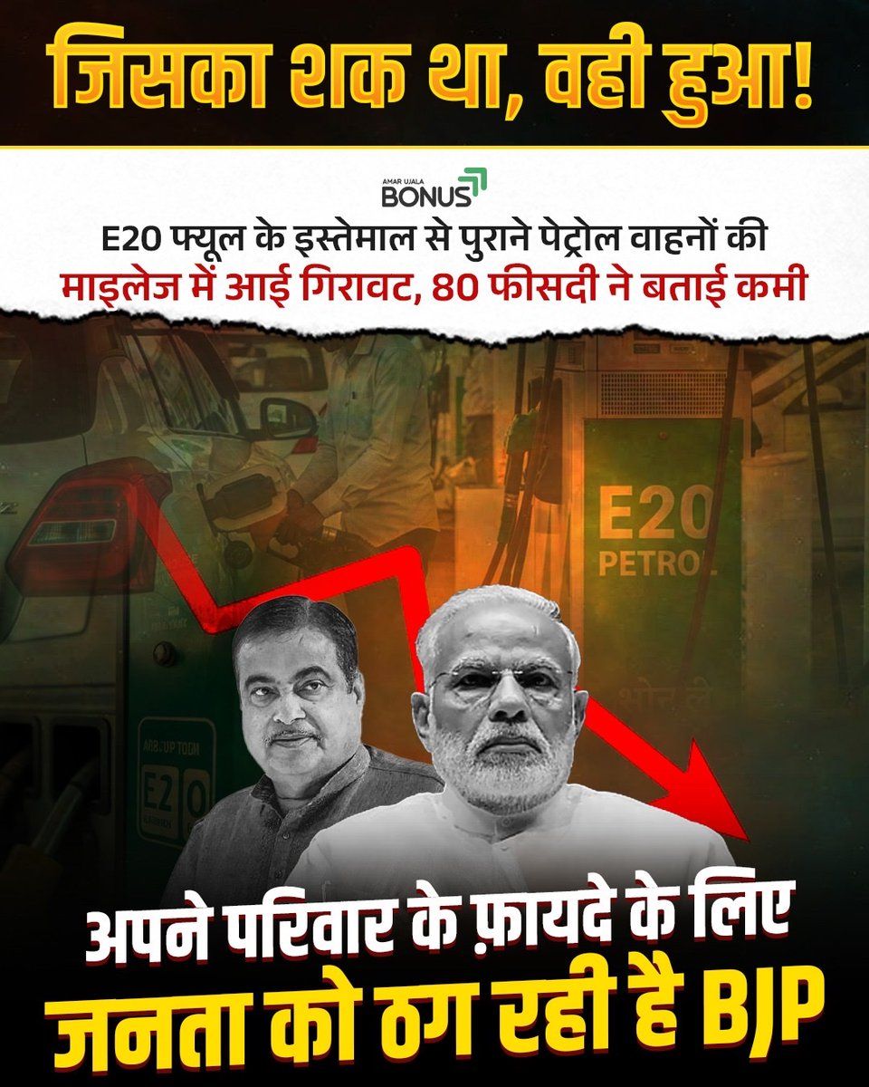 Heavy drop in mileage of vehicles for 80% of people due to the use of E20 Fuel.