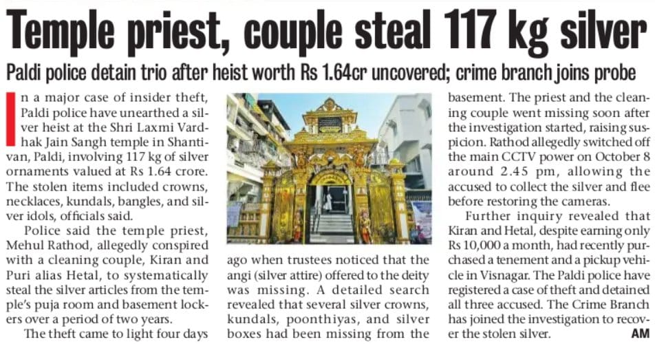 Temple thefts are rising. Fear of god lessens? The question suggests a shift from reverence to opportunism, where divinity is no longer a deterrent.