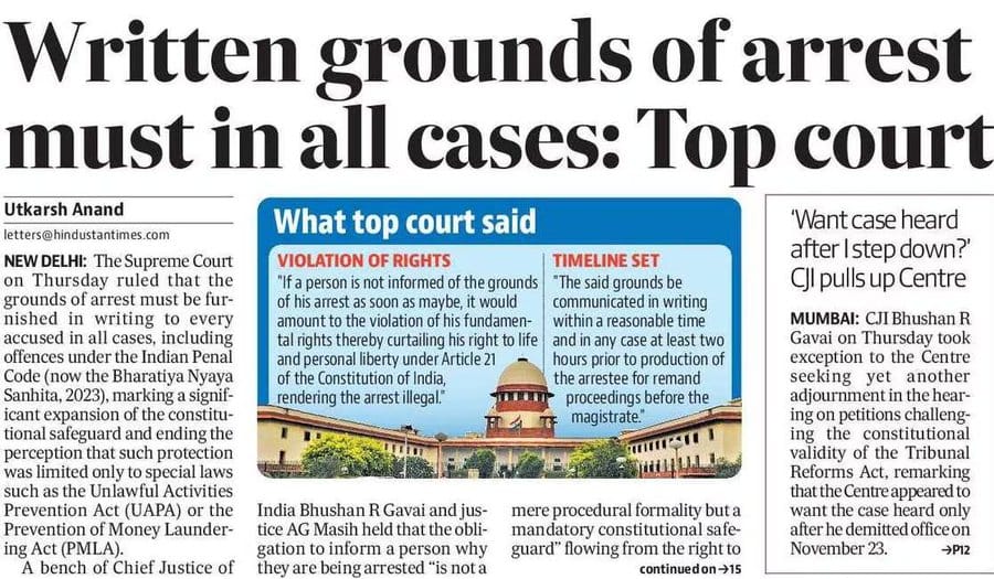 https://www.hindustantimes.com/india-news/written-grounds-of-arrest-must-in-all-cases-top-court-101762455222041.html?utm_source=twitter