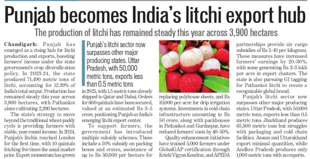 https://x.com/AamAadmiParty/status/1988141186675339606?s=20Punjab becomes India's litchi export hub Punjab's litchi sector surpasses other major producing states.