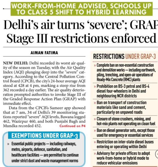 https://www.livelaw.in/high-court/delhi-high-court/arvind-kejriwal-manish-sisodia-plea-against-privilege-committee-summons-not-maintainable-309528Delhi's air turns 'severe'; GRAP Stage III [ Graded Response Action Plan ] restrictions enforced.