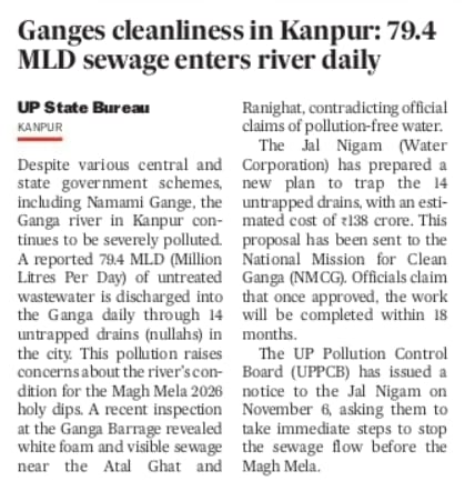 22. Despite various central and state government schemes including 'Namami Gange', the Ganga river in Kanpur continues to be seeverely polluted. 79.4 MLD sewage enters the river daily!