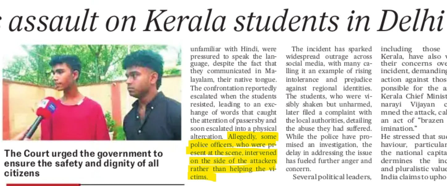 Two students from Kerala were allegedly assaulted in the national capital, “coerced” to speak in Hindi, and mocked for wearing lungis (coloured mundus, a traditional attire in the State).