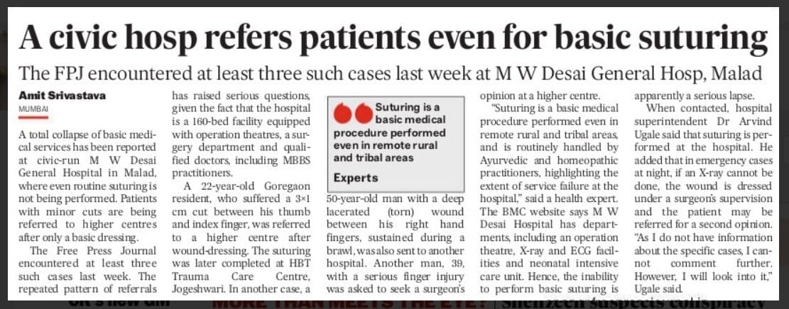 https://x.com/AamAadmiParty/status/1988554866705441005?s=20Mumbai: Civic hospital refers patients even for basic suturing!