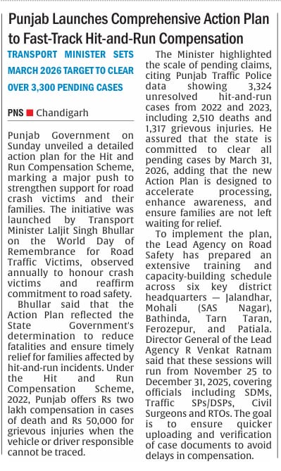 Punjab Launches Comprehensive Action Plan to Fast-Track Hit-and-Run Compensation,