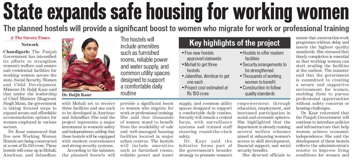 Punjab expands safe housing for working women.