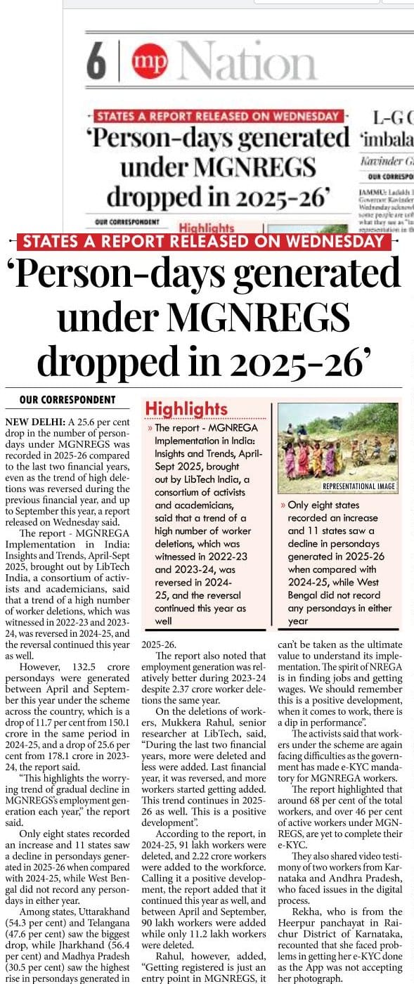 Person-days generated under MGNREGS dropped in 2025-26.
