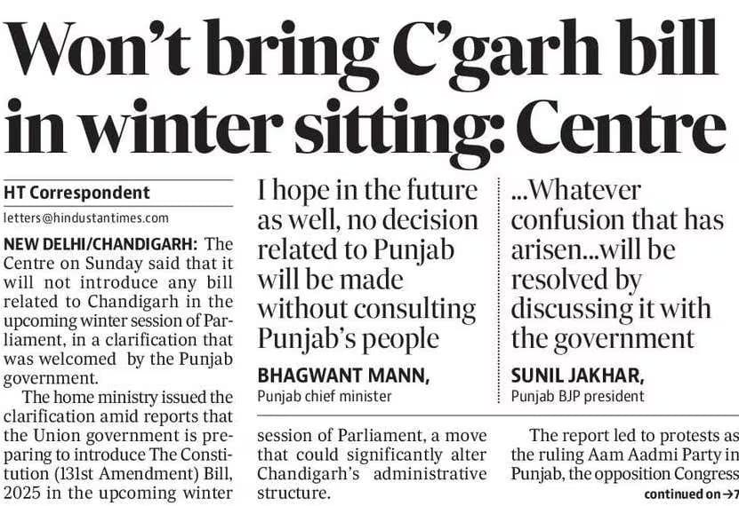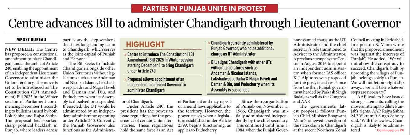 The Narendra Modi-led Central Government is set to introduce the 131st Constitutional Amendment in the upcoming Winter Session of Parliament. Under this, the Modi Government is attempting to strip Punjab of its rights over Chandigarh.