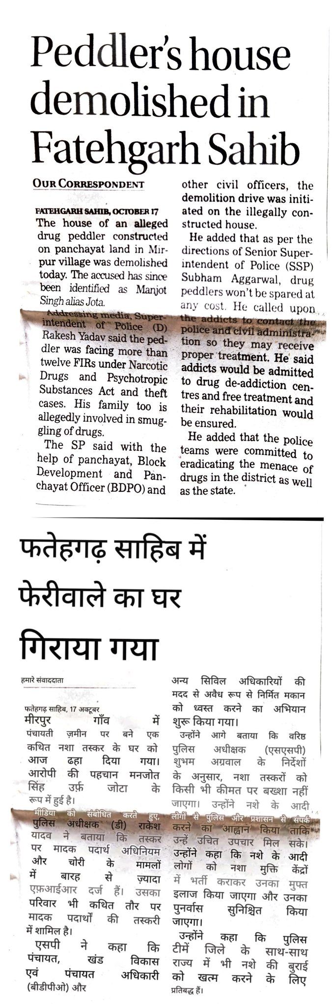 15.The Drug Peddler's House demolished in Fatehgarh Sahib District.