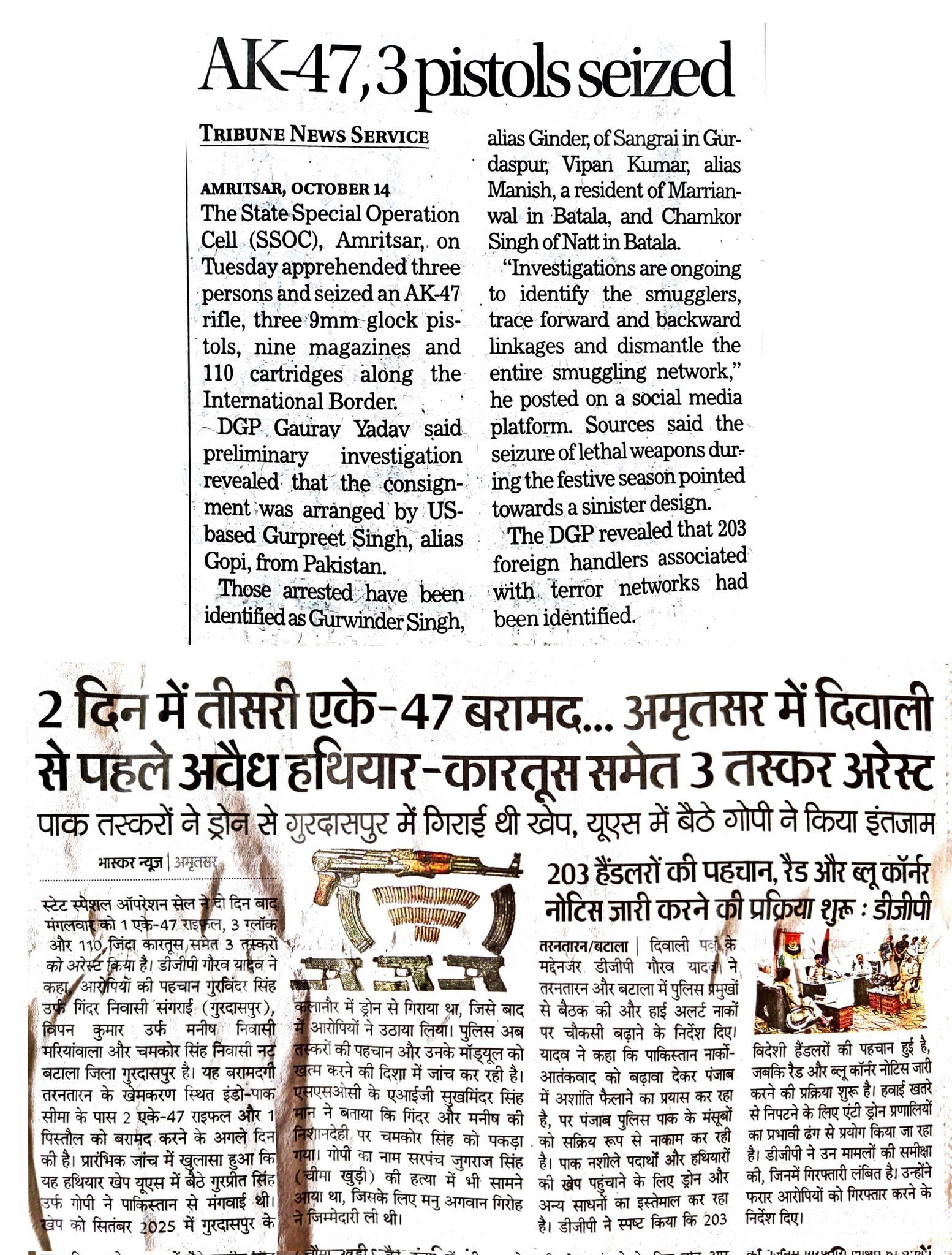 13.The AK-47 Automatic Gun & 3 Pistols Seized in Amritsar.