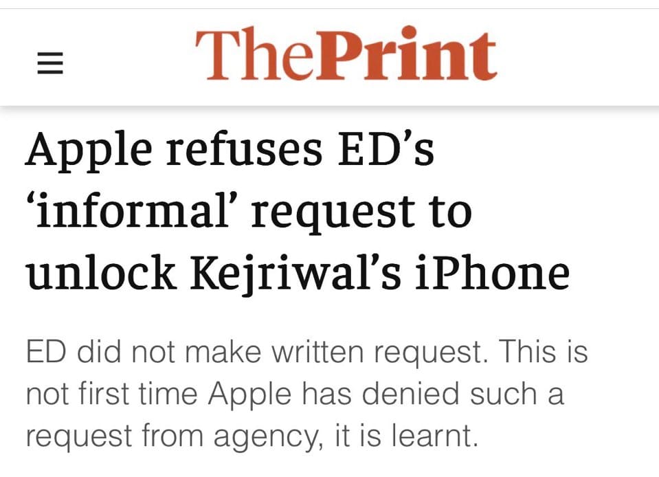 Modi Gov ‘s ED tried to be smart and quietly asked Apple to unlock the then Delhi CM Arvind Kejriwal’s iPhone while he was in custody so that they could snoop and plant evidence. Apple outrightly denied this attempt and refused it. Shift to an iPhone ASAP, even if it is a older model, at least it will fight for your privacy.