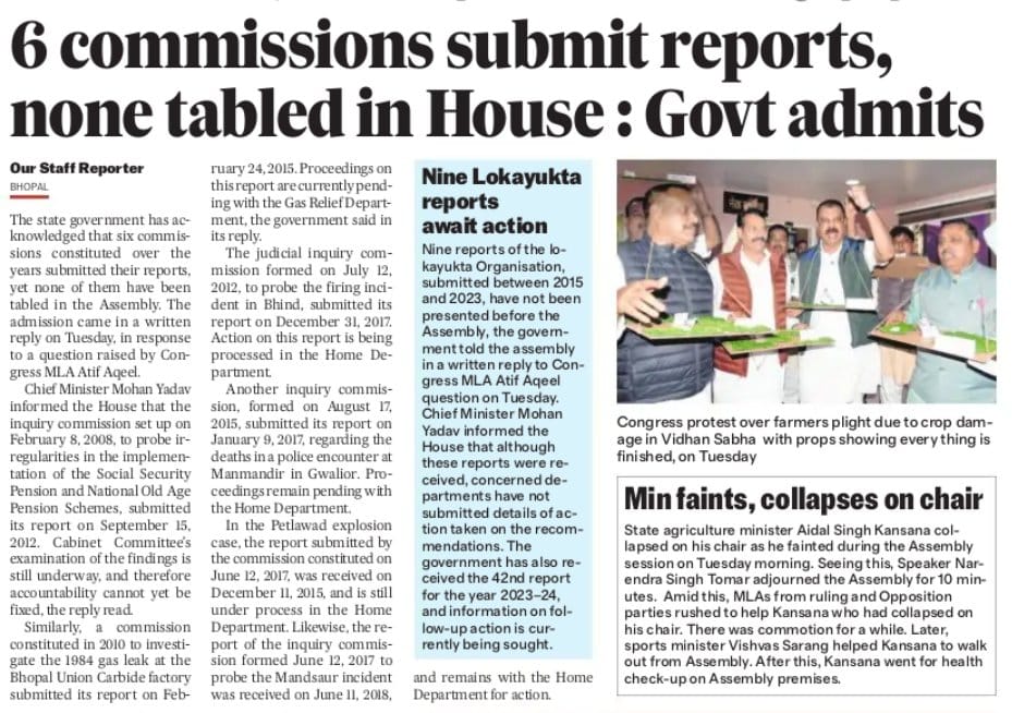 A commission set up in 2008 submitted its report in 2012, and the Cabinet Committee has been sitting on it since then! 6 commissions submit reports, none has been tabled in the House!